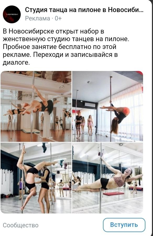 Делюсь новым кейсом по продвижению школы танцев на пилоне в Старом Дрожжаном