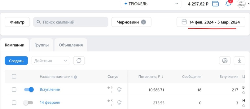 Клиент получил готовую автоматическую воронку трафика и полную запись на заказы конфет к 8 марта. 220 человек заинтересовались рекламным предложением. Это теплая аудитория, с которой можно работать далее: отправлять акции, делиться персональными предложениями. По итогу рекламной кампании результаты Заказчика устроили. Заказчица на 8 марта заказы уже не принимала.